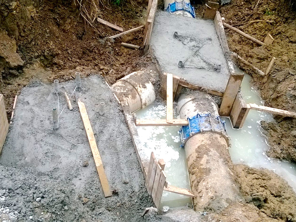 Descripción de las obras: Instalación y suministro de más de 7400 metros lineales de tubería de diámetros entre 100 mm y 350 mm en material PVC presión. Como redes de conducción se suministraron e instalaron más de 5000 metros lineales de tubería